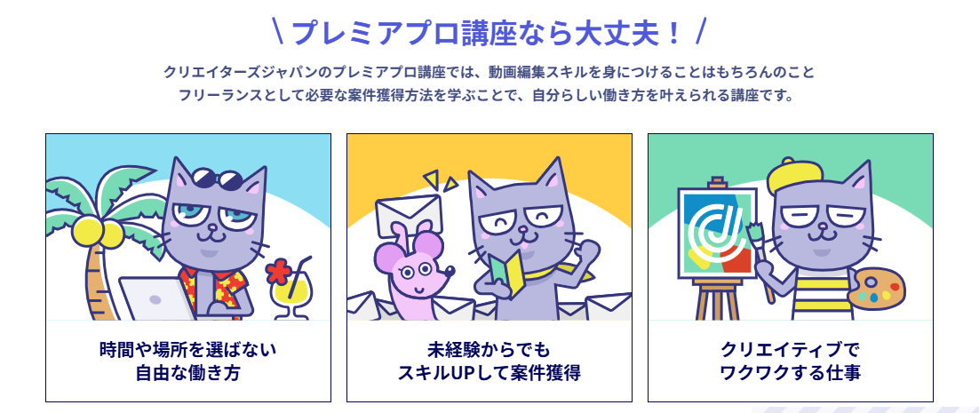 「クリエイターズジャパン」では、初心者でも迷わないようにステップ式で学べます。