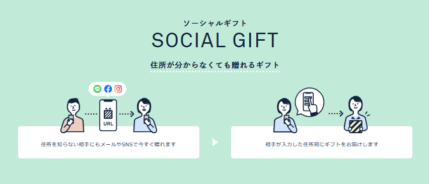 ソーシャルギフトならメールやLINEで手軽に贈れるため、遠方の方や急な贈り物にも対応できます。