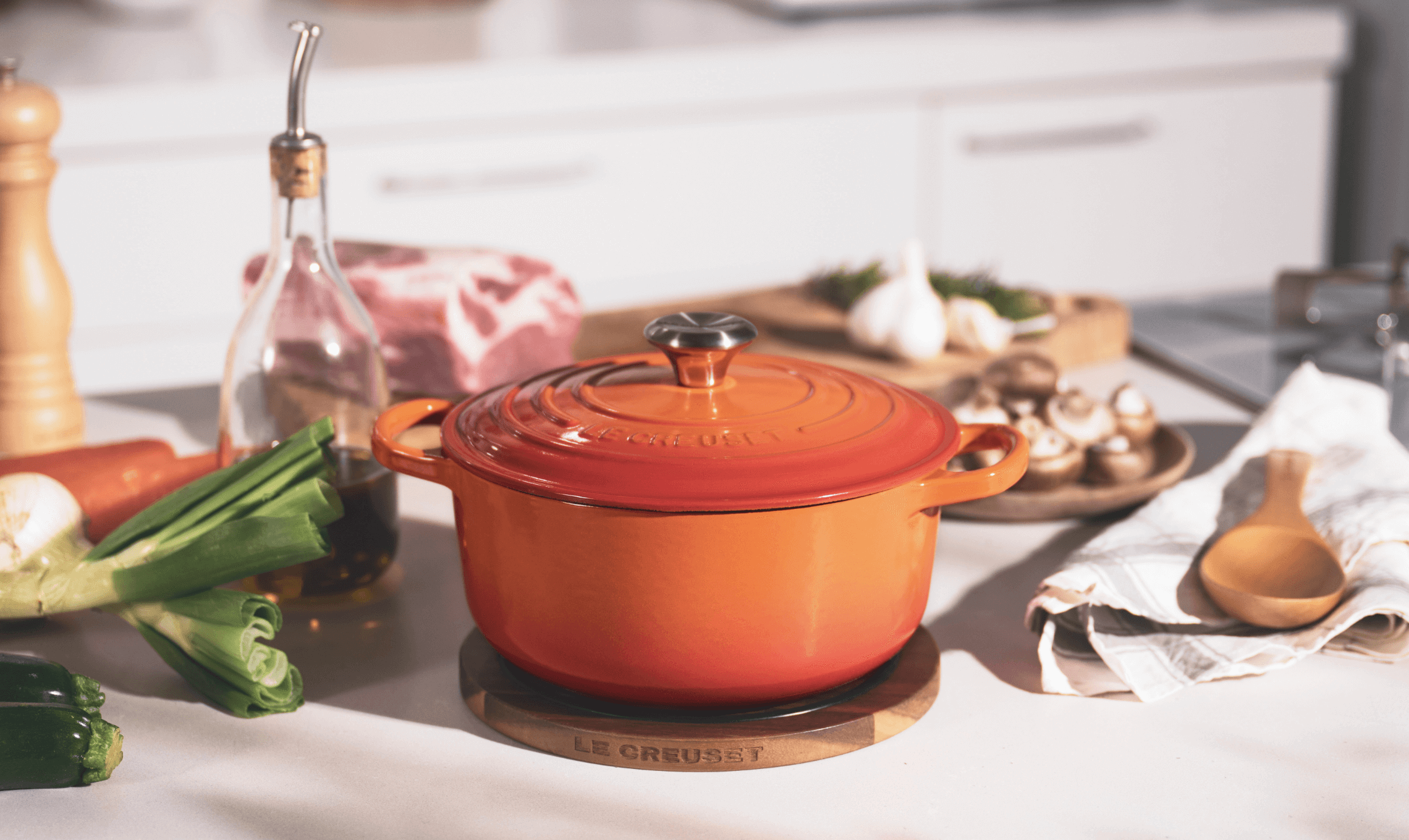 1925年、フランスの北部フレノワ・ル・グランで誕生したル・クルーゼ。その歴史は、職人の技術と革新的なデザインの融合から始まりました。厚みのある鋳物ホーロー鍋は、優れた蓄熱性と均一な熱伝導を誇り、素材本来のうま味をじっくりと引き出します。外側のエナメルは耐久性に優れ、艶やかな輝きを長く保ちます。時間を重ねるほどに愛着が深まる“道具を超えた逸品”として、世界中のキッチンで愛されています。