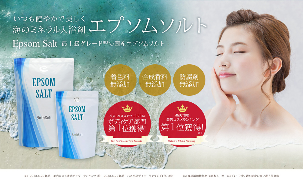 エプソムソルトは、硫酸マグネシウムを主成分とした入浴用アイテムです。