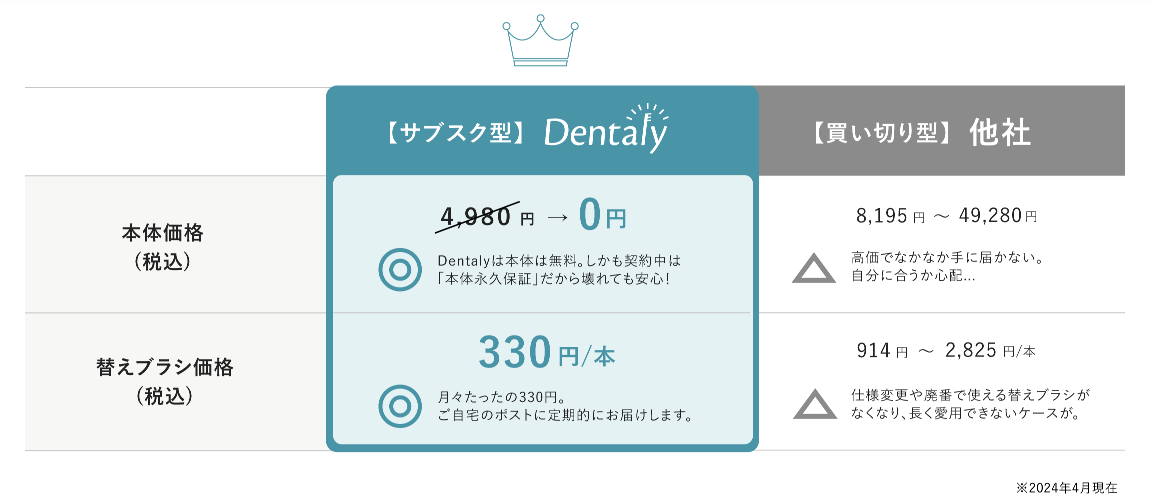 Dentaly(デンタリー)は、電動歯ブラシを定額制で利用できるサービスです。