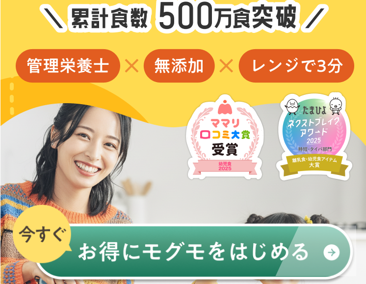 モグモは、1歳半〜6歳向けの冷凍幼児食として、忙しい毎日のごはん作りを少しラクにしたい家庭に向いています。